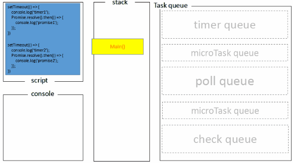 script,setTimeout,setInterval,setImmediate(ie下生效)MessageChannel(消息通道),I/O,UI Rendering - micro-task(微任务):